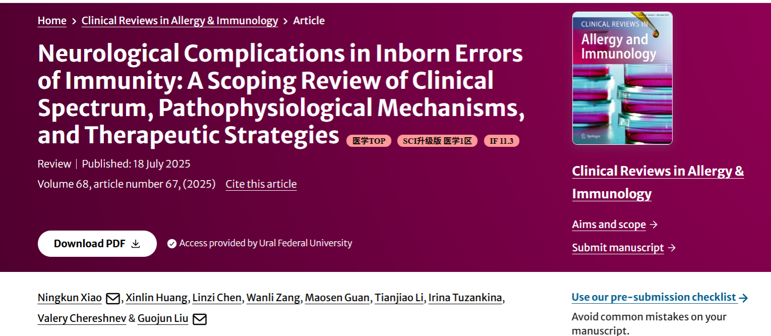 刘国君团队在Clinical Reviews in Allergy & Immunology发表研究成果