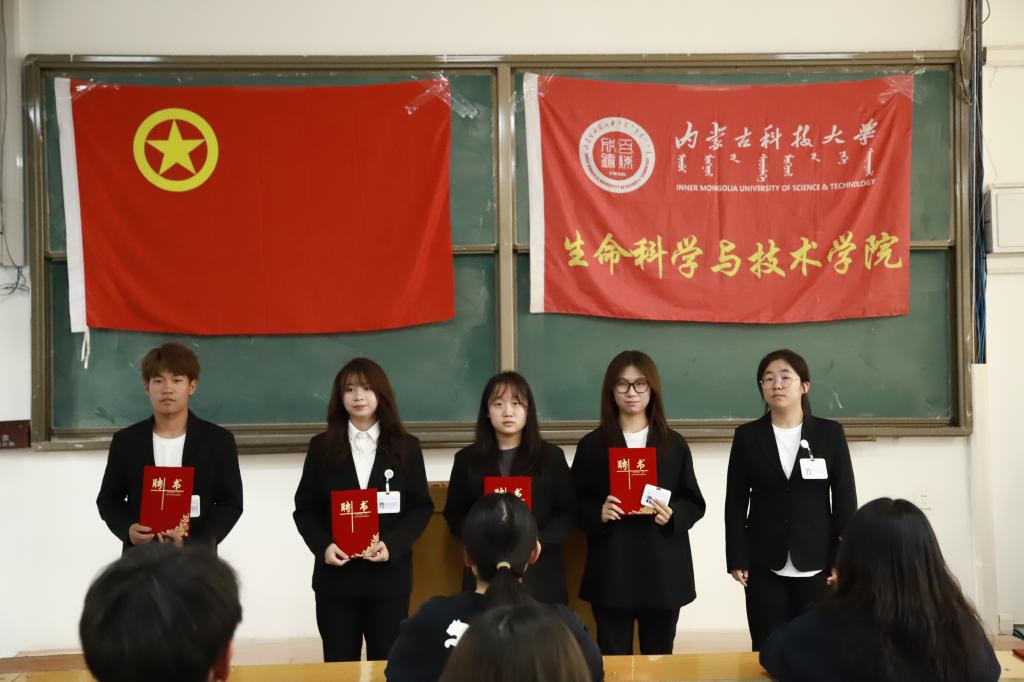 大会第三项:聘任2023届团学组织主席团。(1)乌日根老师宣读2023届团学组织主席团成员名单:主席团主席许双丁同学、团总支副书记孙悦同学、副主席昝梓萌同学、副主席杜志豪同学;(2)张超老师为2023届团学组织主席团成员颁发聘书和工作证,并对2023届团学组织未来一年的工作做出简要期许;(3)2023届主席团成员依次介绍了自己及分管部门,并对任期内所承担工作做出表态与承诺。