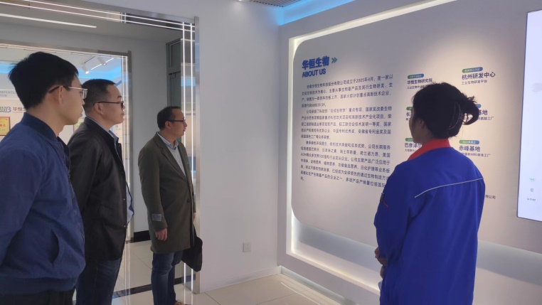 随后,黄书记一行来到巴彦淖尔华恒生物科技有限公司,优秀校友、公司校园招聘负责人徐冉对老师们的到访表示热烈欢迎,在介绍公司发展情况的同时,也带领老师们参观了企业文化宣传展厅。系主任邢永强老师就beat365官网的生物信息学专业建设情况、培养方案等情况进行了详细介绍。徐冉表示公司目前处于较好的发展阶段,希望beat365官网的优秀毕业生能够加入公司,共同成长进步。黄书记对毕业生入职薪资待遇、工作性质、发展方向、晋升渠道和生活保障等方面进行详尽的了解,同时希望同巴彦淖尔华恒生物科技有限公司架起稳固共赢的校企合作模式。