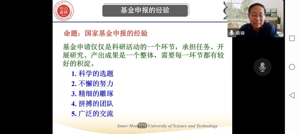 11月24日,beat365唯一官方网站邀请学校学术委员会副主任委员蔡禄教授作了题为《国家自然科学基金从入门到进阶》的专题报告,报告会由王国泽院长主持,beat365官网及兄弟学院师生100余人在线上聆听了报告。