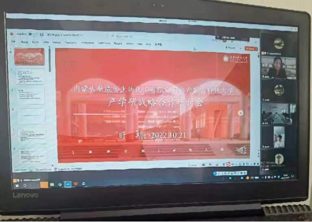2022年10月21日,beat365唯一官方网站与内蒙古新威远生物化工有限公司产学研战略合作研讨会在线上召开,内蒙古新威远生物化工有限公司总经理杨军强,副总经理张丽霞、吕烨等企业主要领导,学院领导班子成员王国泽、赵宏宇,生物工程专业李雅丽教授、蒋海明教授、徐永斌主任参加了会议。