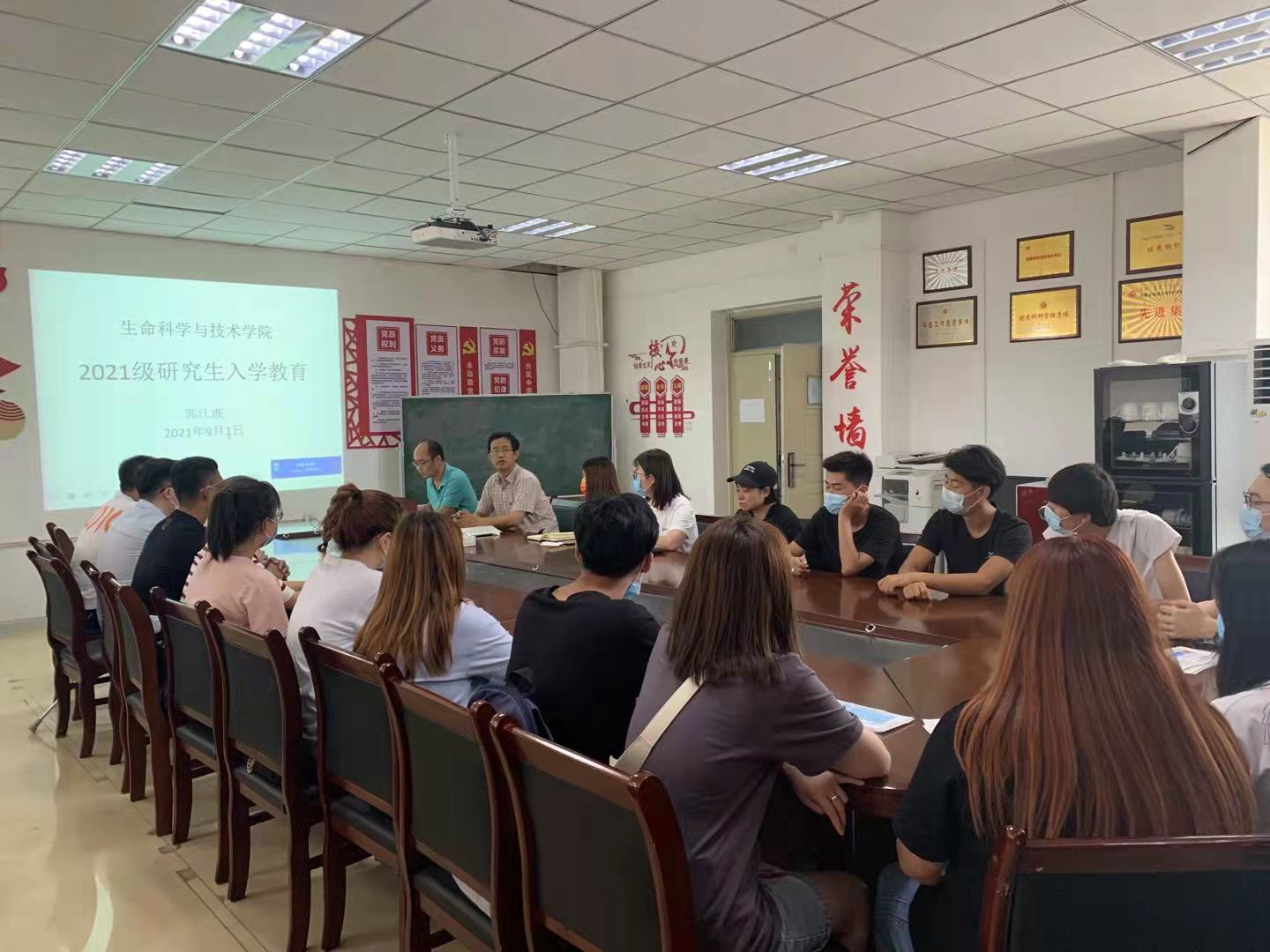 在这个秋高气爽的金秋时节,beat365唯一官方网站迎来了2021级研究生。新学期伊始,为加强新一届研究生的教育管理工作,培养学生良好的生活、学习、科研习惯,快速地适应研究生阶段的学习生活,beat365官网于2021年9月2日上午10:00-12:00在腾飞楼D410召开了2021级研究生入学教育大会,研究生新生共计24人,无人请假,全员出席。