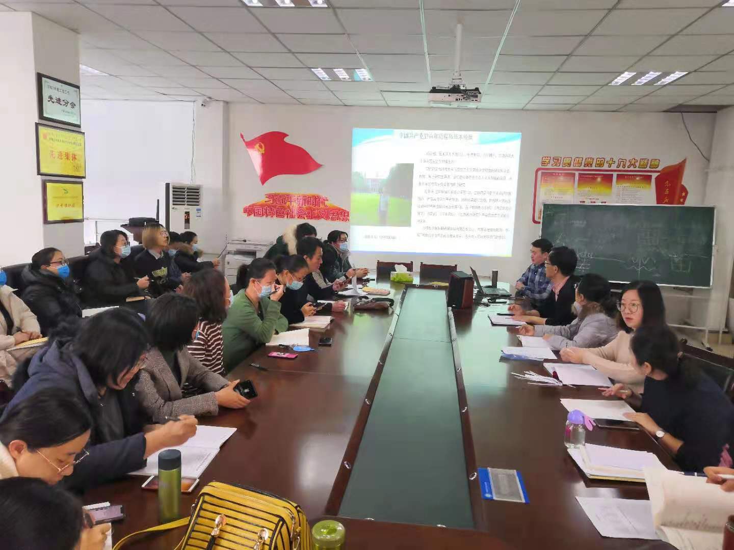 百年风雨兼程,一代又一代的共产党人为了实现中华民族的伟大复兴奋斗着;为了国家的繁荣昌盛努力着;为了心中的理性信念坚守着。当今在面临大时代大变局的冲击中,中国依然屹立于世界的东方,在中国共产党的领导下会更加的繁荣昌盛。全体教师听后深受鼓舞,积极表明决心:不忘初心牢记使命,知敬畏、存戒惧、守底线,树立良好形象,为营造风清气正的社会氛围作出应有的贡献。
