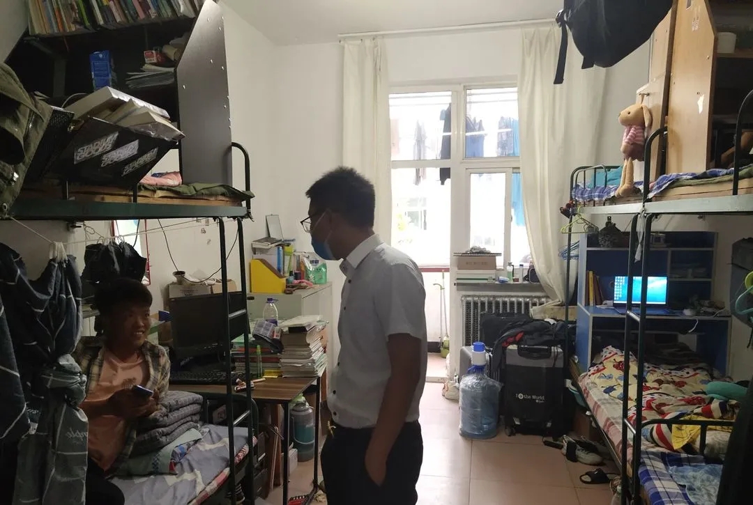 beat365唯一官方网站2020-2021学年秋学期第一轮学生公寓检查工作拉开序幕,为了发扬爱国卫生运动的优良传统,提升学生公寓生活环境,排查安全隐患,按照学院统一部署,8月30日下午,学院团总支袁永峰老师带领学生干部深入男生公寓,检查公寓卫生,强调用电、防火安全并耐心地了解学生返校后学习、生活情况。