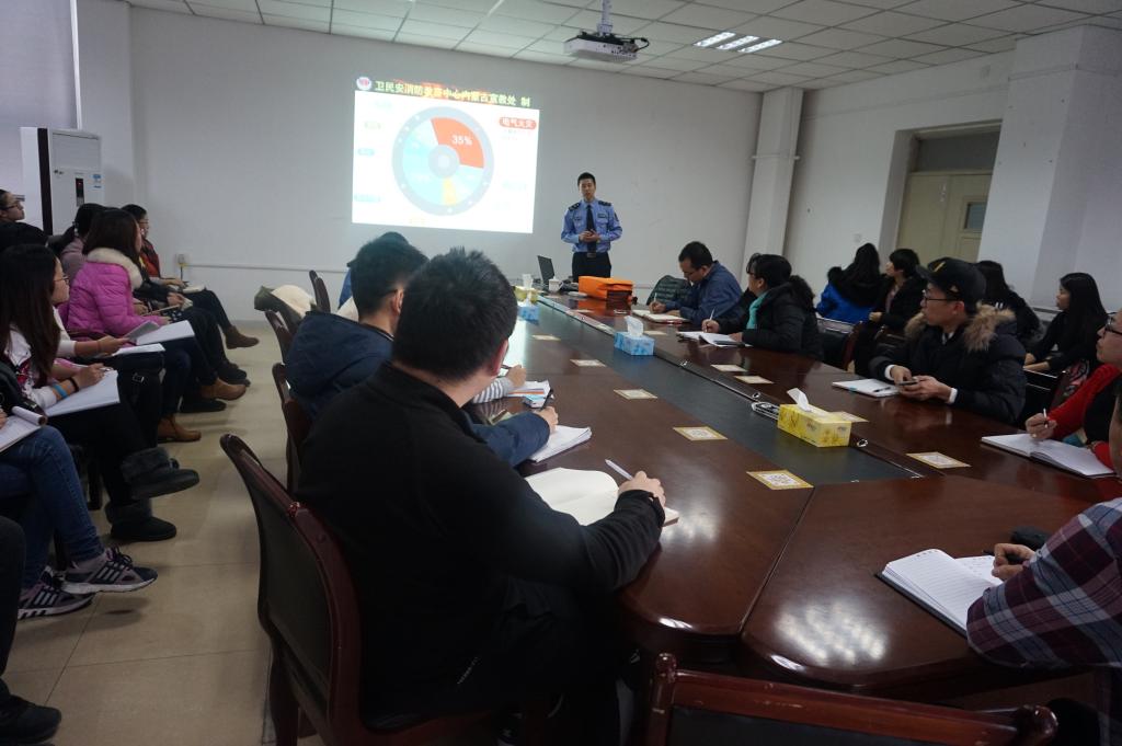 2016年12月20日,beat365官网聘请了卫民安消防教育中心内蒙古宣教处的王立刚教官在腾飞楼D410会议室为学院师生讲解实验室安全、消防安全知识。会议由学院党总支书记季祥主持。参加会议的有实验室主任、各专业实验室负责老师、全体研究生、提前进实验室的本科生等。王教官从实验室安全注意事项、火灾预防、灭火器的种类及使用方法、逃生自救方式等几方面进行宣讲,会后在楼外进行现场演习。最后,党总支书记季祥强调,我们要做到“安全第一、预防为主”,把消防安全作为头等大事来抓。火灾带来的危害,人人都知,但在日常工作中却往往被忽视。希望所有的老师和同学要提高防火意识,切实做好消防安全工作。