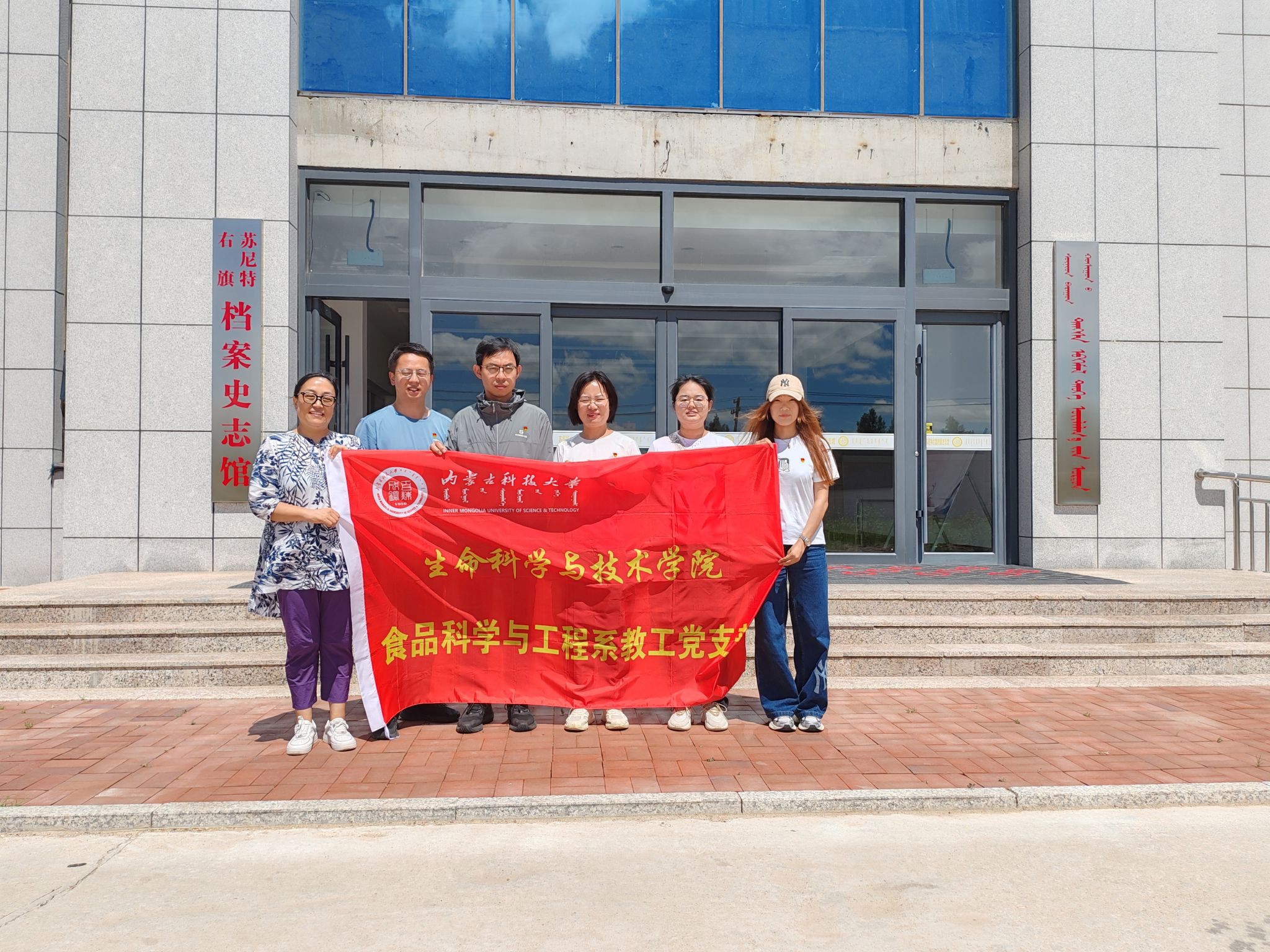 为深挖学科思政资源,传承民族团结精神,7月15日至16日,beat365唯一官方网站beat365唯一官方网站食品科学与工程系教工党支部7名党员教师前往乌兰察布市四子王旗及锡林郭勒盟苏尼特右旗,开展了一场融合历史寻访与专业反思的实践活动,在草原深处的动人故事中汲取育人力量,将铸牢中华民族共同体意识融入食品科学专业建设。