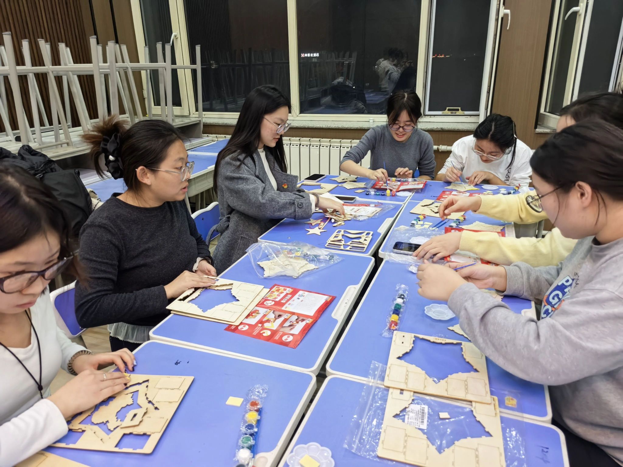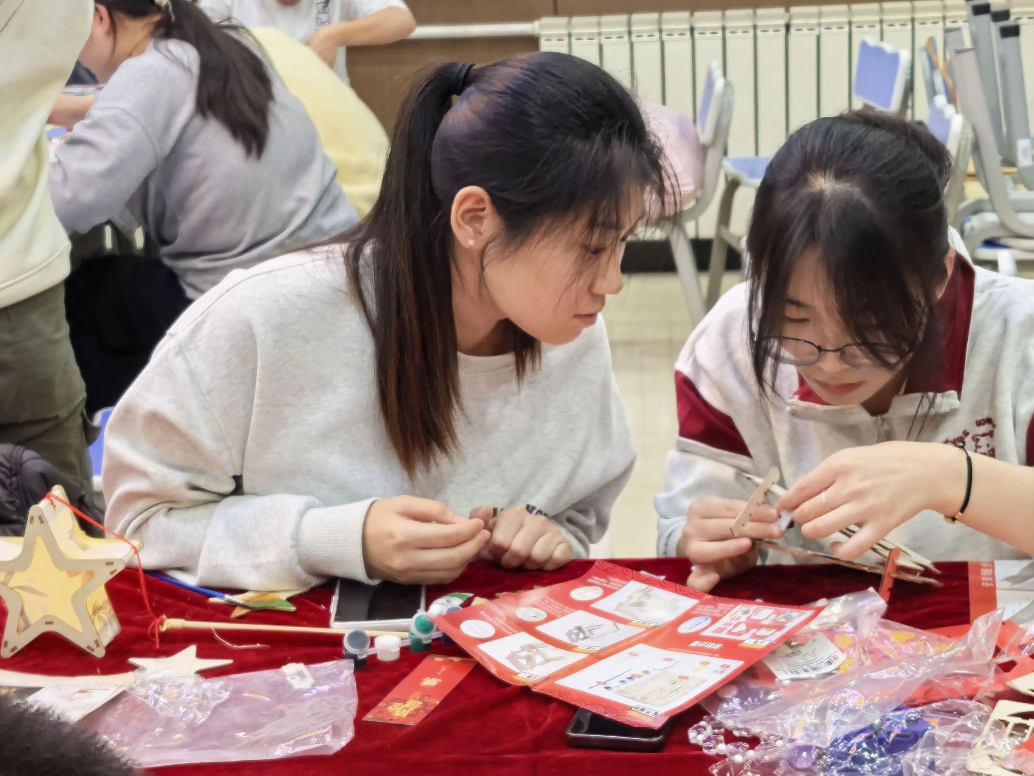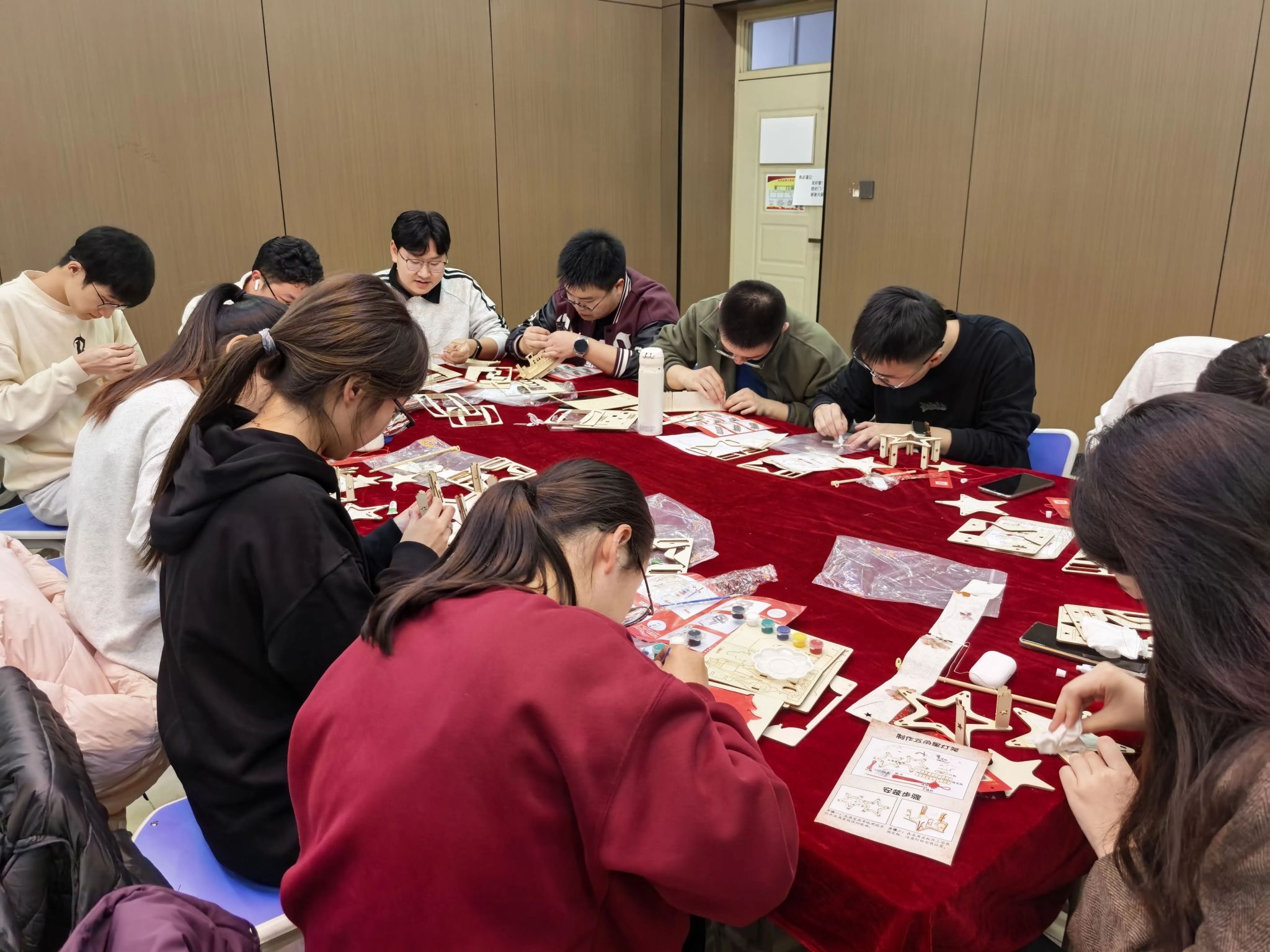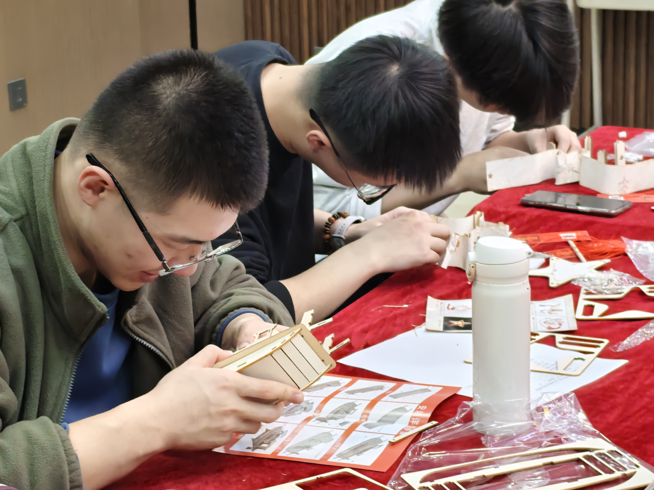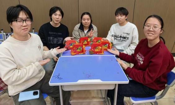 在随后的手工拼图环节中,大家有序协作,细致拼接。学生党员们沉浸其中,有的专注研究图纸,有的默契配合组装……现场气氛热烈而有序,一件件红色主题手工作品在大家的共同努力下逐渐成型。
