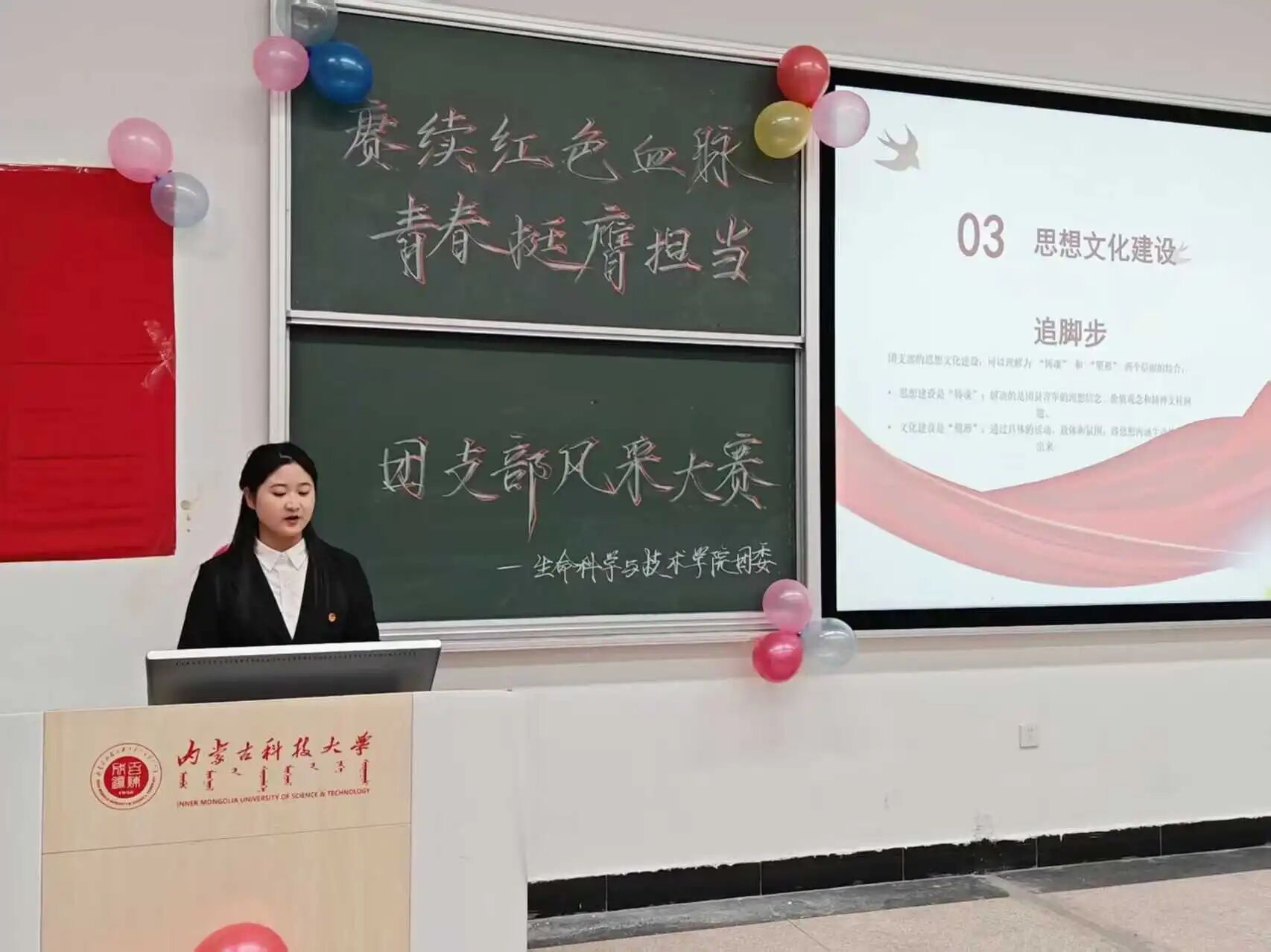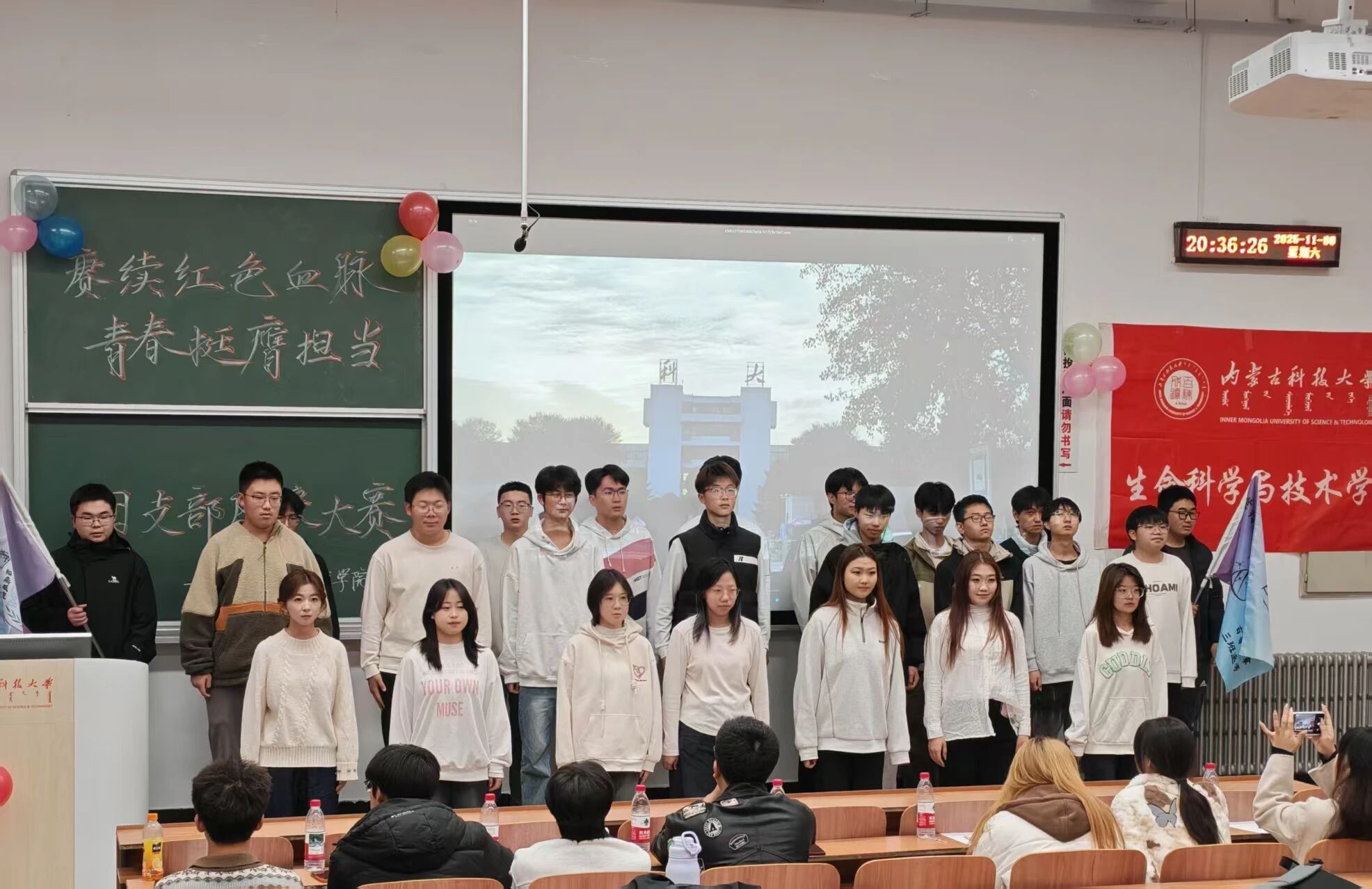青春逢盛世,奋斗正当时。11月8日,beat365唯一官方网站“赓续红色血脉,青春挺膺担当”团支部风采大赛成功举办,团委负责人贾镇宁、学工办负责人乌日根及各学生组织主席担任本次活动评委。本次活动不仅丰富了校园文化生活,更以艺术为媒介、以创意为桥梁,展现了青年学子对红色精神的创造性传承与创新性表达。各团支部紧扣主题、精心编排,以歌抒怀、以舞励志、以诵明志,生动诠释了新时代青年的使命担当,彰显出踔厉奋发、昂扬向上的精神风貌。