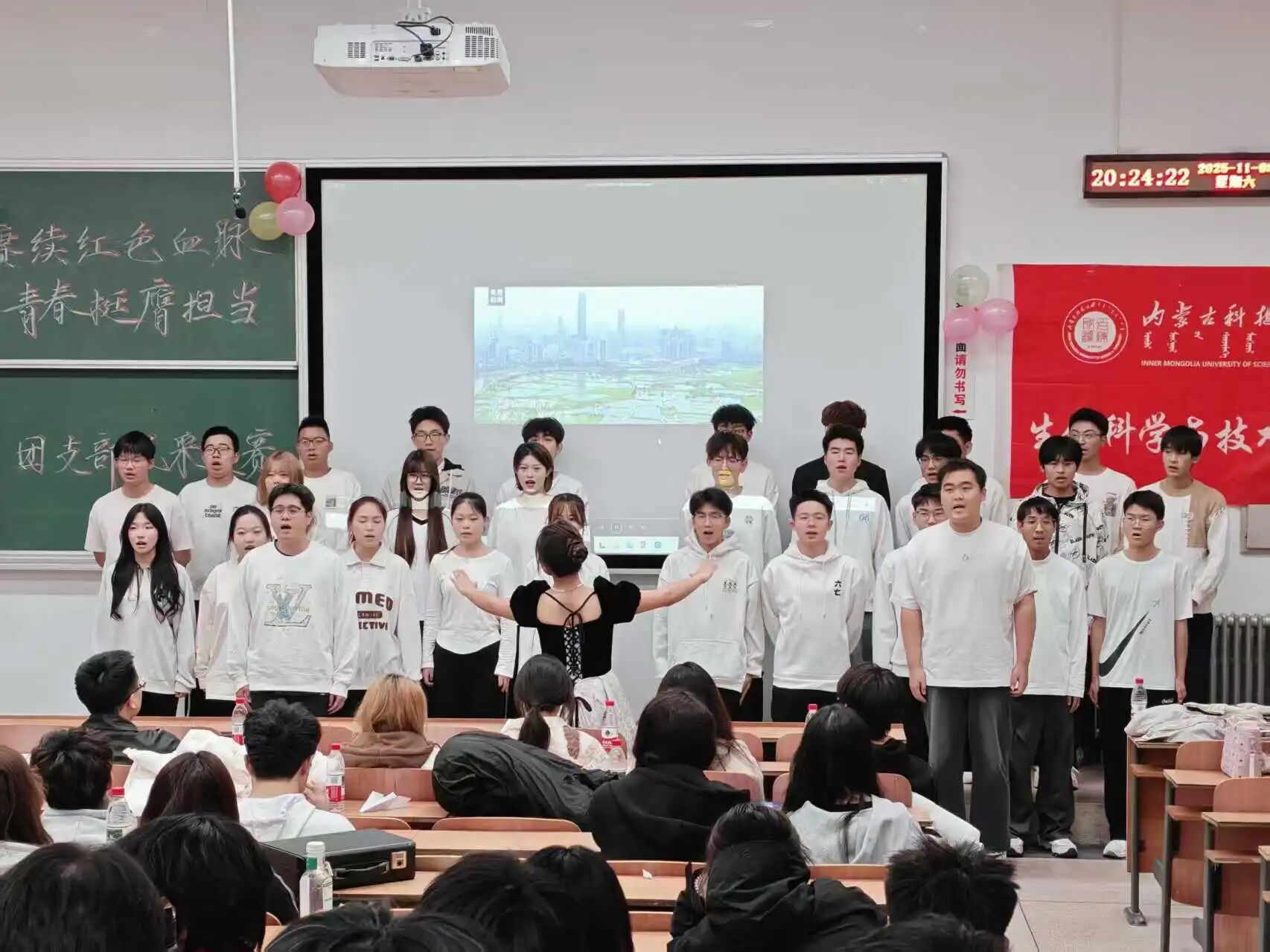 其他团支部的表演同样精彩纷呈。25生技4班的合唱《歌唱祖国》,以饱含深情的歌声抒发对祖国的热爱;25生技2班的歌舞《紫荆花盛开》,融家国情怀于优美旋律,传递对祖国统一的坚定信念;25生工3班的歌舞《奔跑》,以动感舞姿展现青年不畏艰难、奋勇向前的精神;25生信1班的朗诵《一脉承光,逐梦同行》,娓娓述说红色精神的代代相传。特别值得一提的是,25食品3班的朗诵《崛起的中国》,以宏阔视野回顾祖国发展历程,从“两弹一星”到改革开放,再到科技腾飞,最后以“吾辈青年,当与祖国共成长”的铿锵誓言将现场气氛推向高潮,引来经久不息的掌声。