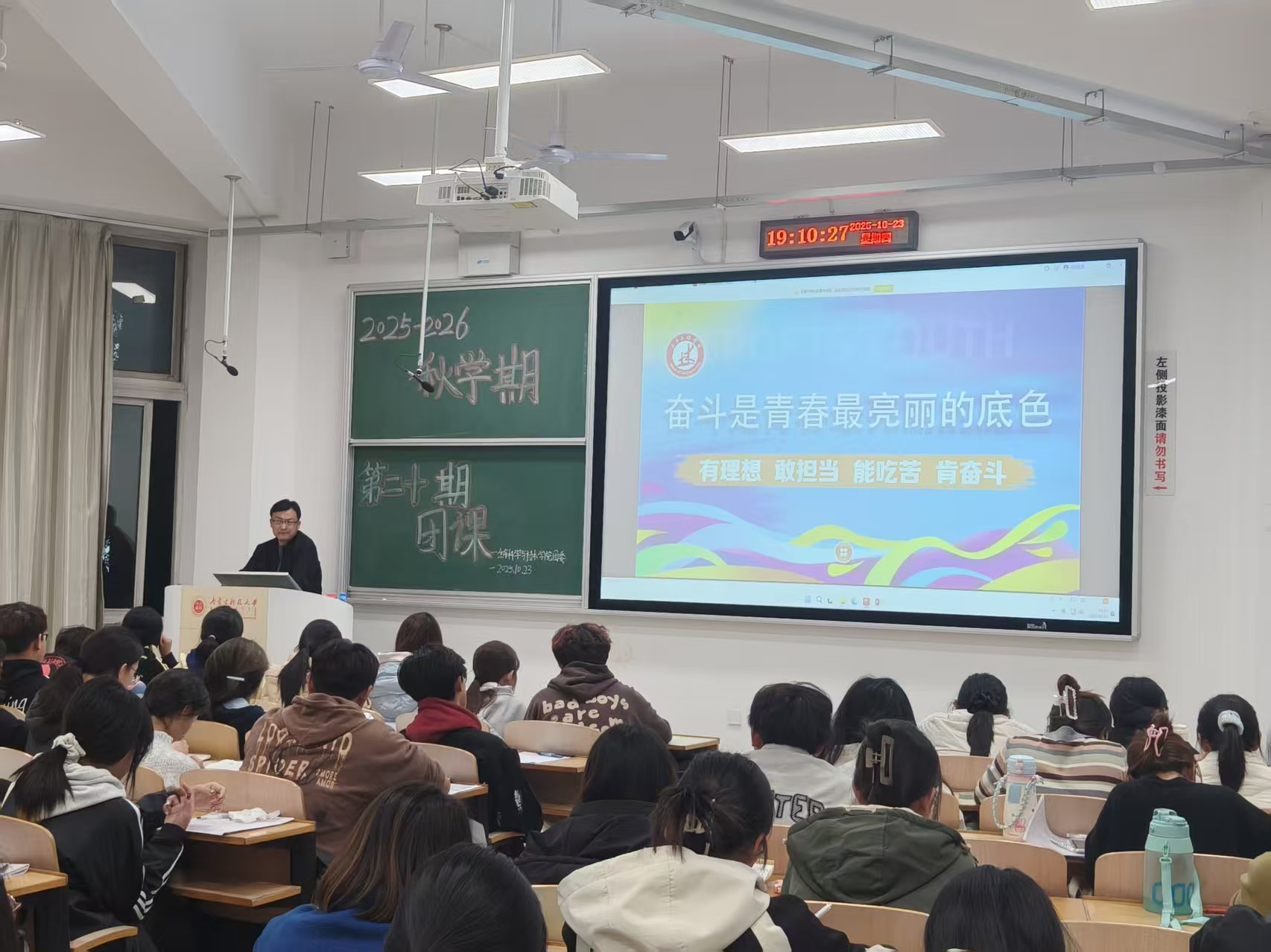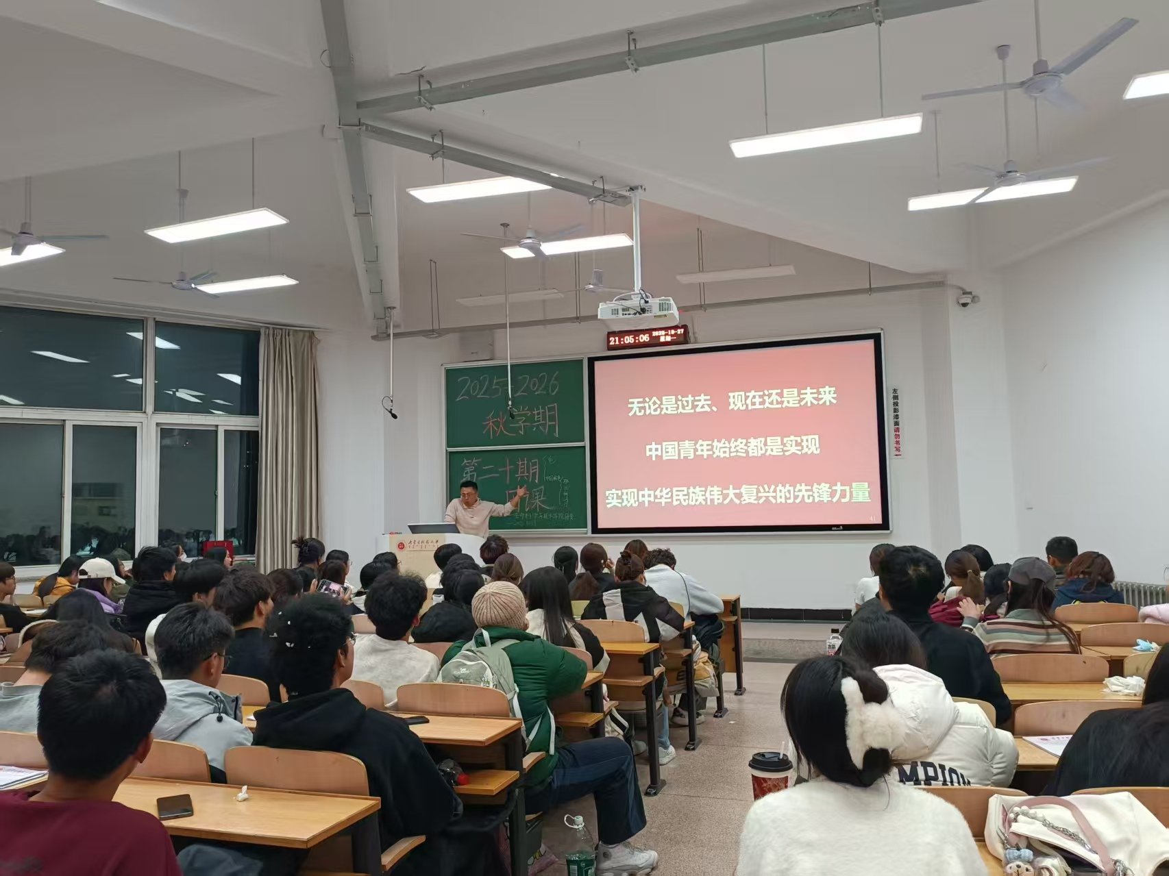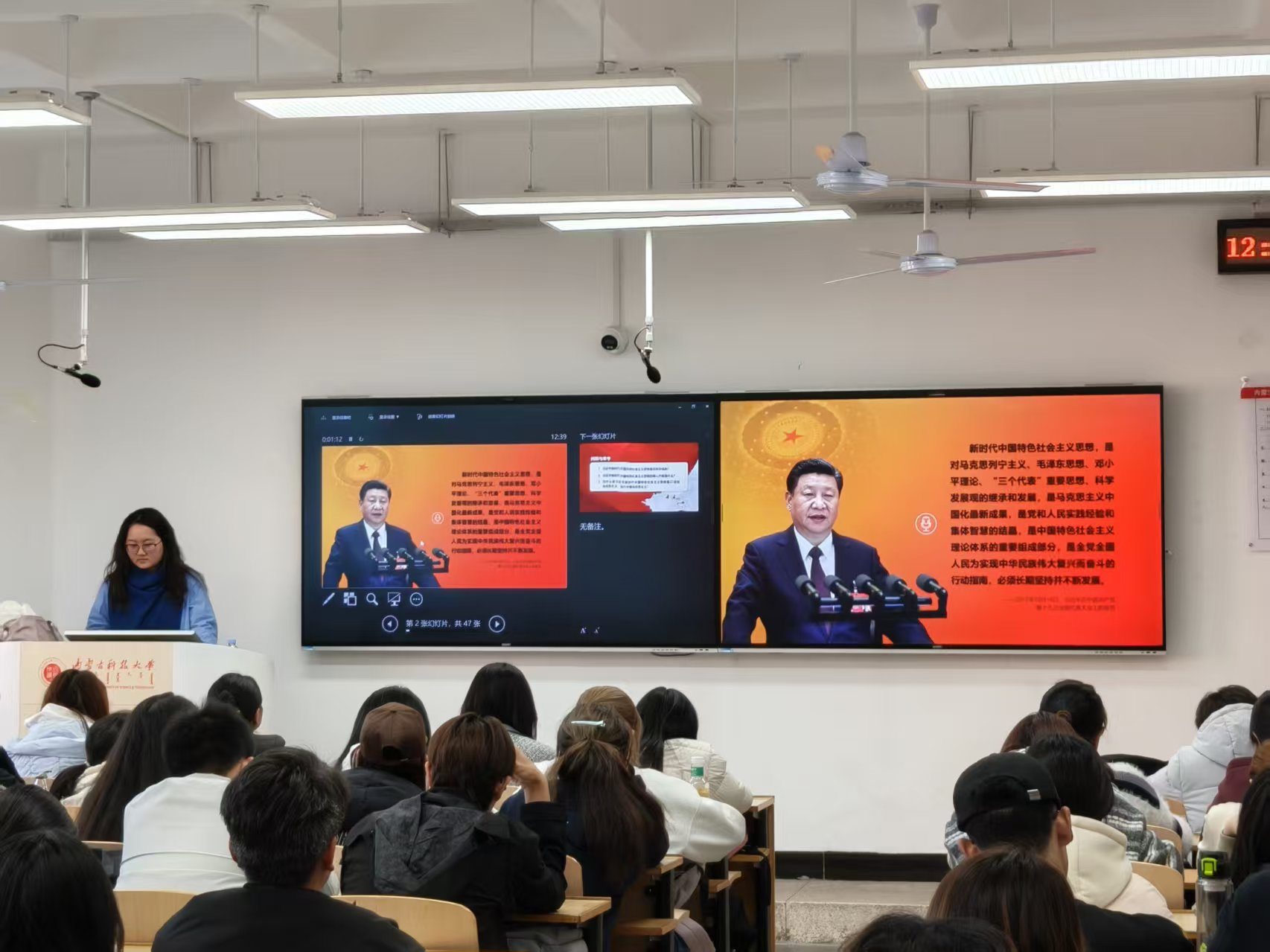 贾镇宁老师系统讲解习近平新时代中国特色社会主义思想及习近平总书记系列重要讲话精神,从理论体系到实践要求,从战略部署到青年使命,层层递进。她特别结合二十届四中全会提出的一系列新思想、新观点、新论断,使党的创新理论入脑入心。