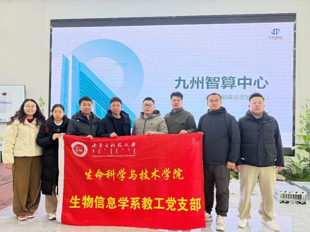 随后,支部先后走访了九州智算中心、华域生物、科拓生物及赛科星等四家企业。在九州智算中心,负责人重点介绍了其在高性能计算领域的服务能力与生态系统。孟虎表示,强大的算力是生物信息学研究与应用的基石,了解本土算力资源的实际情况,对于学院优化课程设置、指导学生开展科研实践至关重要。