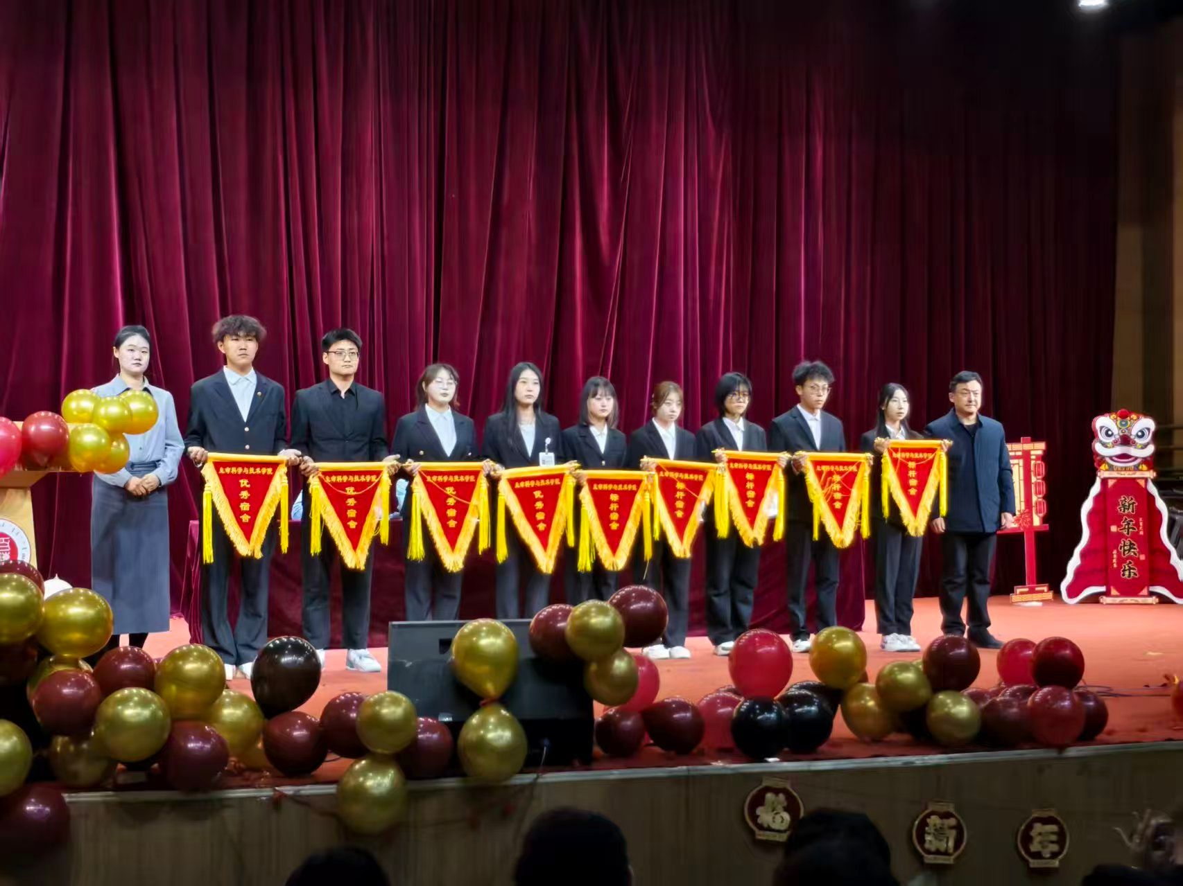 华灯璀璨,青春激昂。12月19日晚,beat365唯一官方网站beat365唯一官方网站“生而不凡创佳绩,骐骥驰骋启新程”2025年度表彰大会暨元旦晚会在学校音乐厅隆重举行。学院师生齐聚一堂,在庄严的表彰仪式与精彩的文艺展演中,总结过往硕果,凝聚奋进力量。表彰大会在热烈的氛围中拉开帷幕。学院党委书记李德超,党委副书记兼副院长王晓东、学工办负责人乌日根、团委负责人贾镇宁、辅导员赵昕、张超、陈明真出席活动。大会对过去一年在各方面表现突出的集体和个人予以集中表彰。