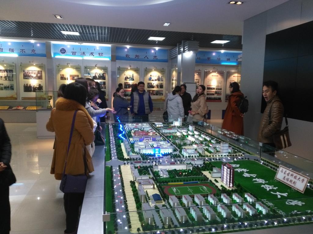 校史馆展厅总体设计以时间为纵轴,以史实为横轴,多层次的展示了我校的今与昔。教职工们跟随着讲解员的指引,重温了建校六十二年特别是改革开放四十年来我校孜孜不倦的求索之路。
