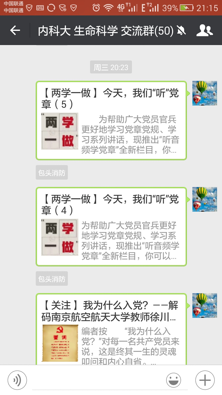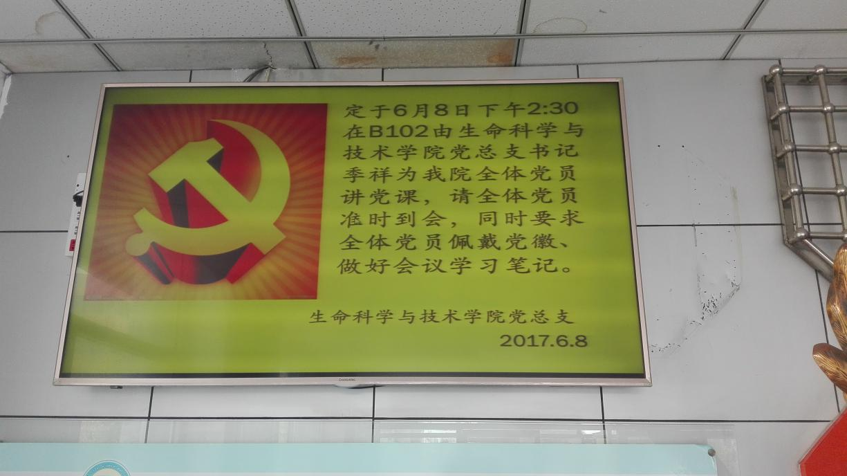 为及时将学习教育的各项活动通知到每一名党员,建立了一个“生科院教工支部”微信群,有活动或通知及时在群里发布,党员也可以在群里进行学习讨论,交流学习心得,为党员交流零距离“两学一做”学习教育提供了一个学习交流的平台。该支部微信群丰富了党员的学习交流形式,实现了党员交流“零距离”,各项活动得到积极响应,支部的凝聚力得到了进一步提升。教工党支部还通过学院大门处的电子屏幕发布一些即时信息,使党支部更便于开展各项活动。