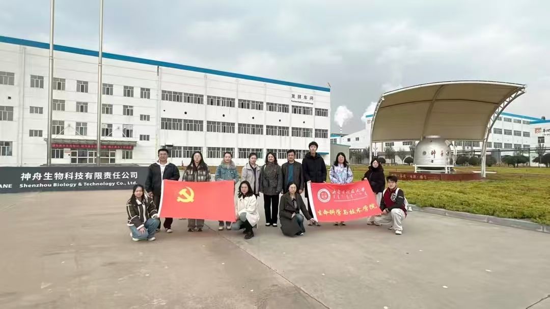 当日下午,走访一行来到华润双鹤神舟生物科技有限责任公司。在该公司总经理助理刘娜(生物技术系优秀校友)的带领下参观了厂区,看望了校友,并进行了深入座谈交流。刘娜对华润双鹤的历史发展沿革、业务板块、行业地位、用人需求及人才培养模式进行了详细深入地讲解,让与会师生对该公司形成了立体而全面的认知,对其在生物制药行业的整体形象与综合实力有了更为深刻的认识。随后双方还就如何有效推动党建与业务深度融合、企业人才需求与学校专业培养有效对接等问题进行了务实探讨,双方在联合开展主题党日活动、建立常态化交流机制等方面达成高度共识,为后续深化共建关系奠定了坚实基础。