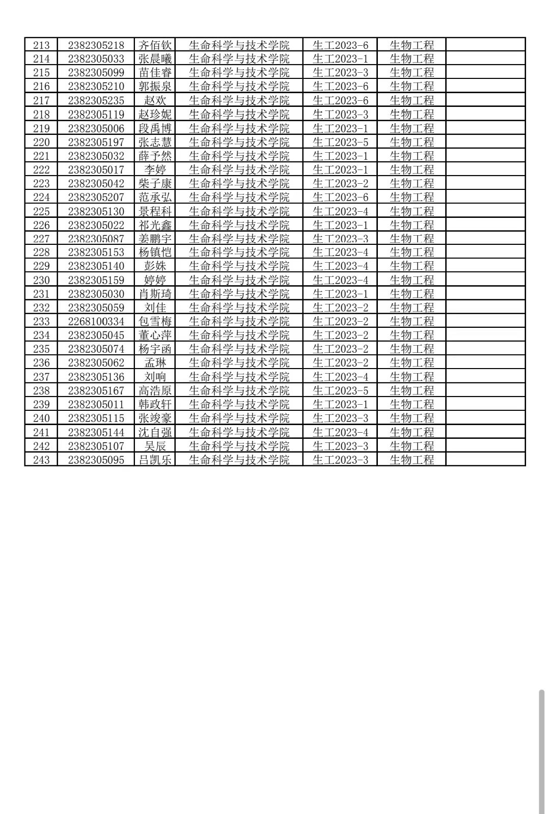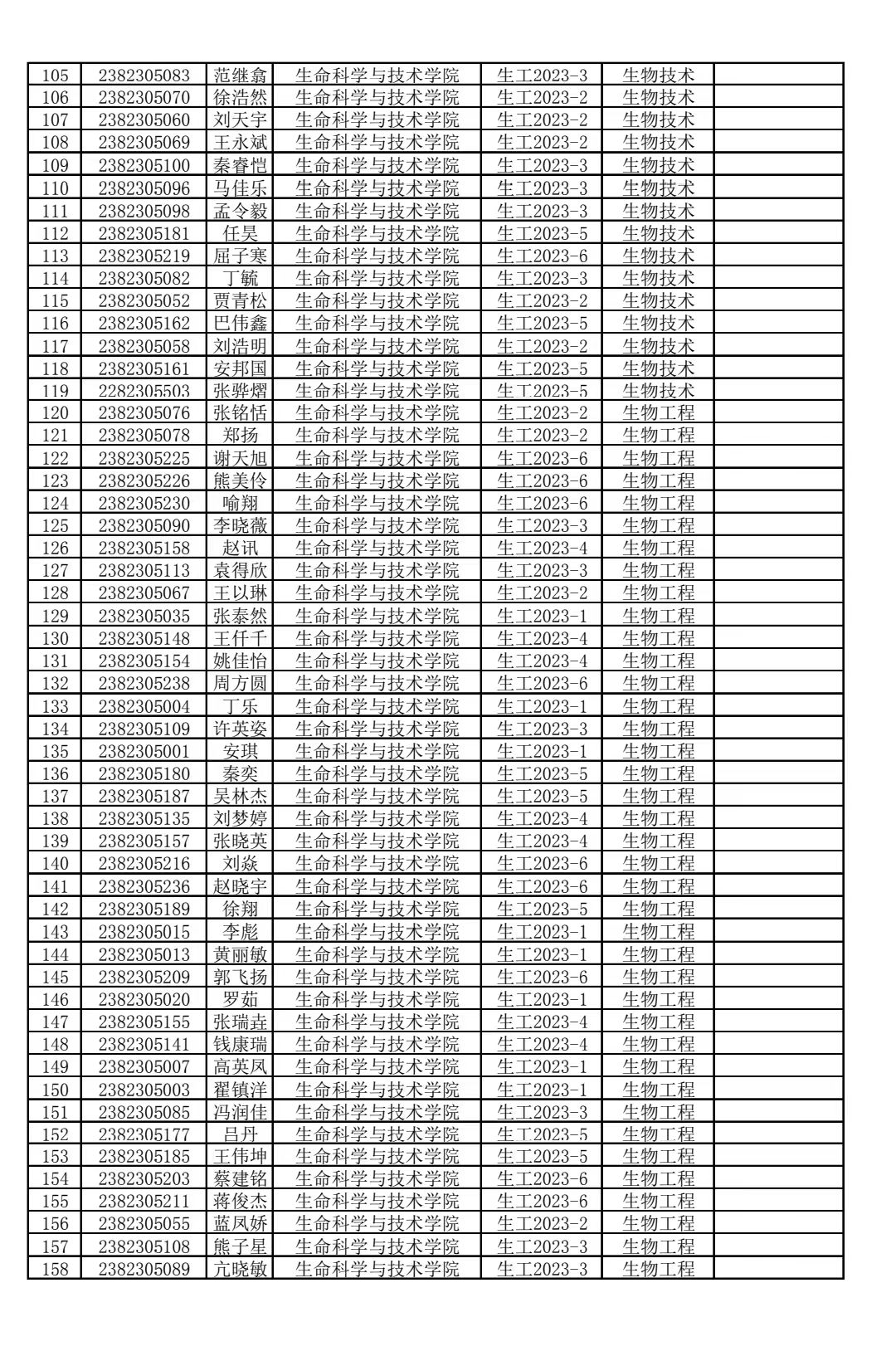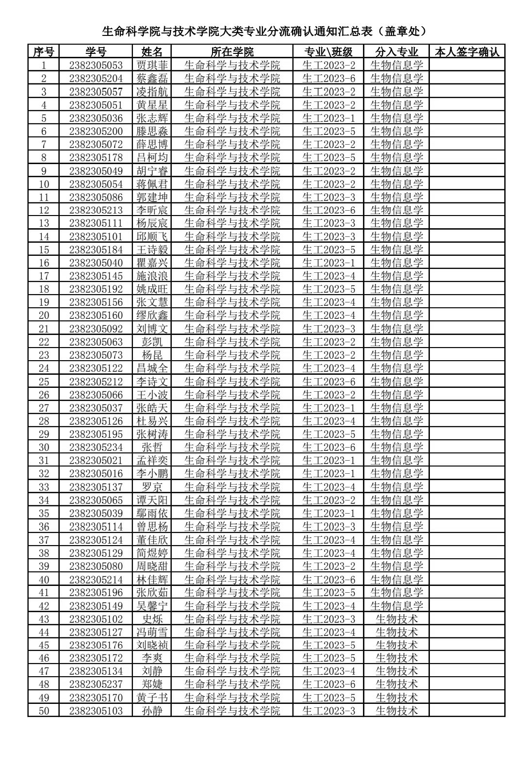 beat365唯一官方网站2023级生物工程类专业分流结果公示