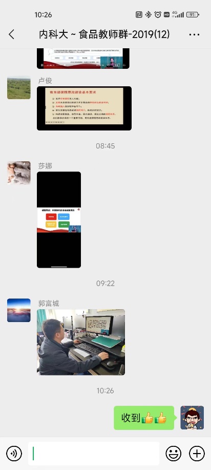 食品科学与工程系于4月4日-6日开展了专题学习、研讨活动,通过自主学习结合集中研讨的方式进行。4日-6日上午,老师们通过自主学习的方式,详细学习了思政大讲堂的讲座内容。4月6日下午,系部开展了研讨会,各位老师总结了讲座内容,发表了自己的理解和见解,并结合所带课程交流了以后思政教育的目标和教学方式。讨论热烈,总体学习效果良好。